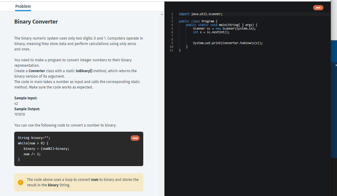 Binary Converter Java Sololearn